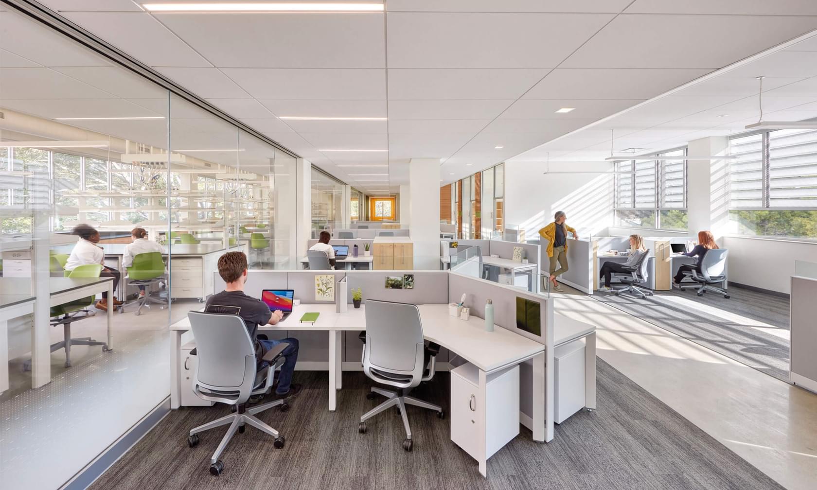 The renovations at UCLA’s four-level, 37,351sf Botany Building included the building and an adjacent herbarium. The work consisted of removing all existing interior partitions and installing new MEP and life safety systems. It also included a new roof, entrance, accessibility upgrades, seismic upgrades, technical equipment upgrades and interior finishes. Additionally, the building houses wet and dry labs for research, classrooms, and related support spaces. Construction was guided by standards for buildings eligible for listing on the National and California Registers of historic places.