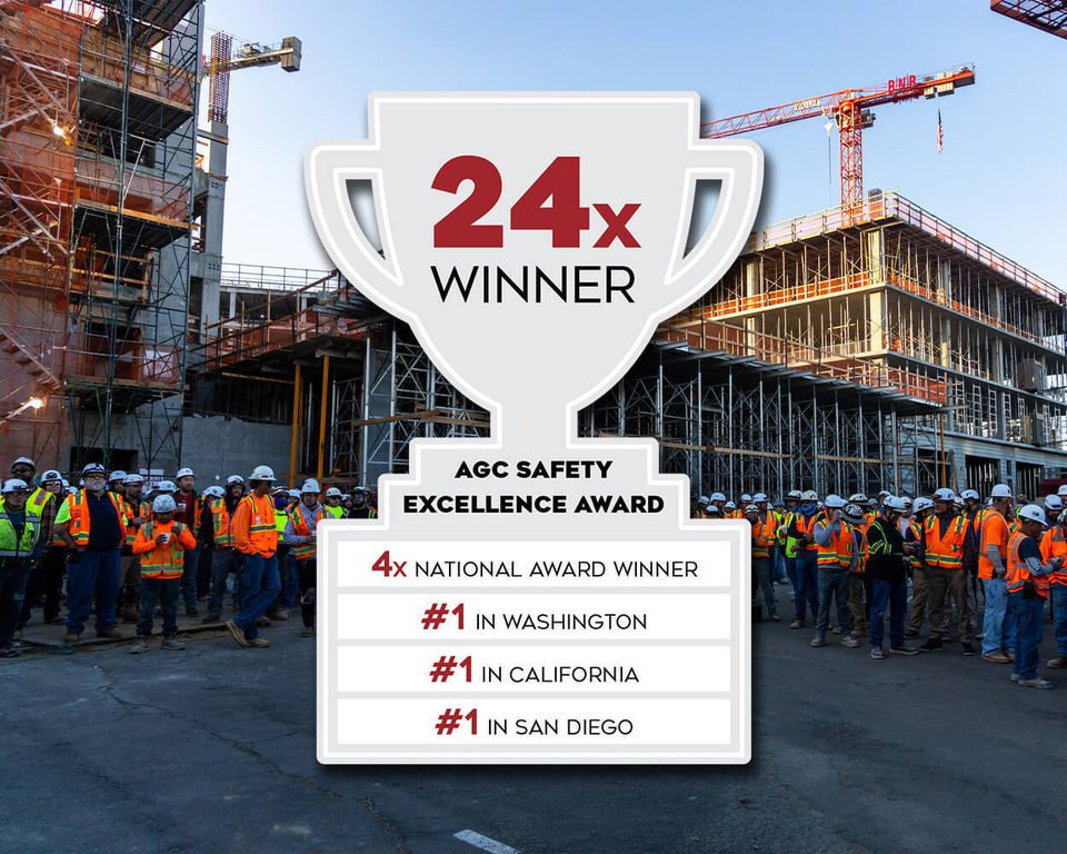 Throughout our company, a focus on jobsite safety and total worker health is at the top of our priorities. We seek input and buy-in from every person on our projects, from our craftworkers to company leadership, and are continuously looking to improve. As a result, our program has been repeatedly recognized by the Associated General Contractors and other accredited organizations with local, regional and national awards.
