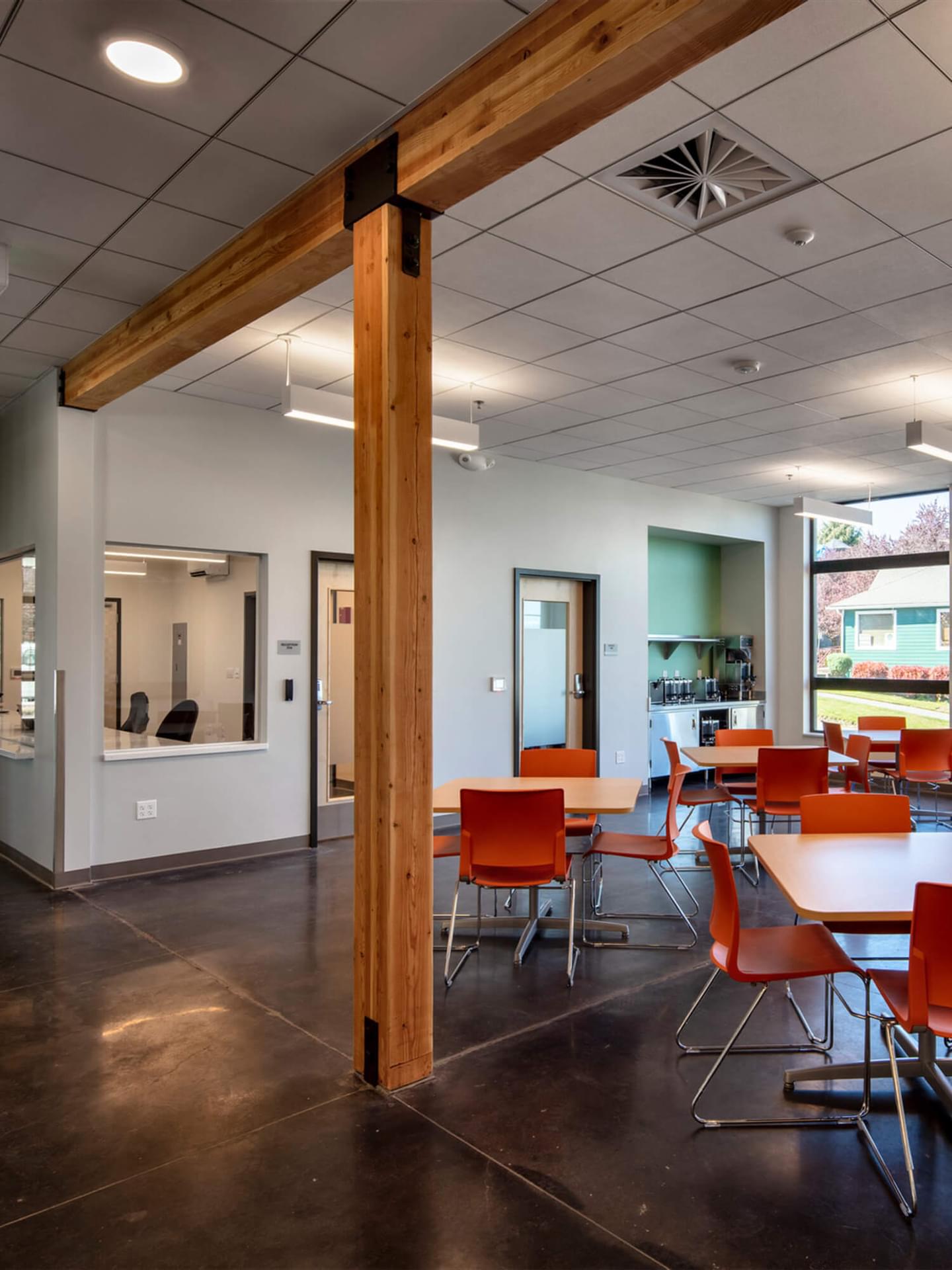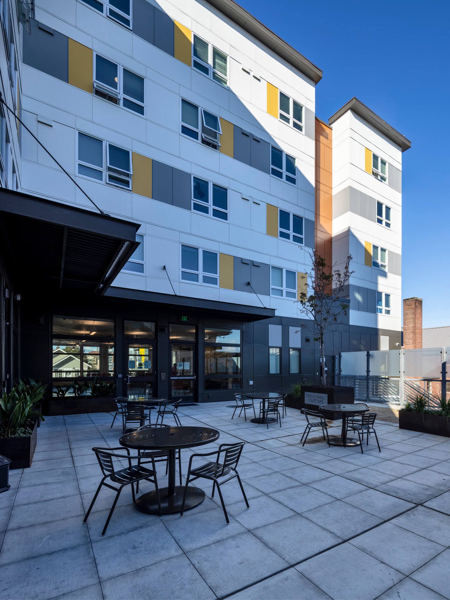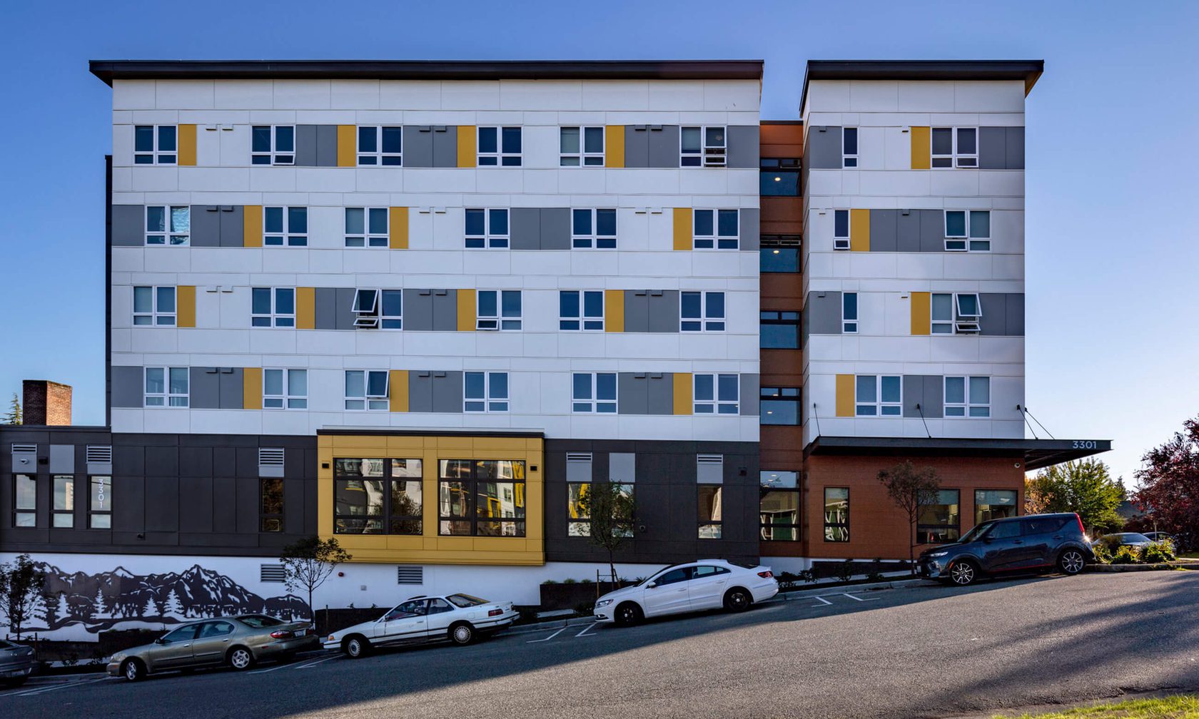This consisted of a five-story, 82-unit supportive housing project with four levels of wood framing over a partial basement. The project included studio apartments, an exterior patio, and community spaces with a commercial kitchen, dining area, and office space.