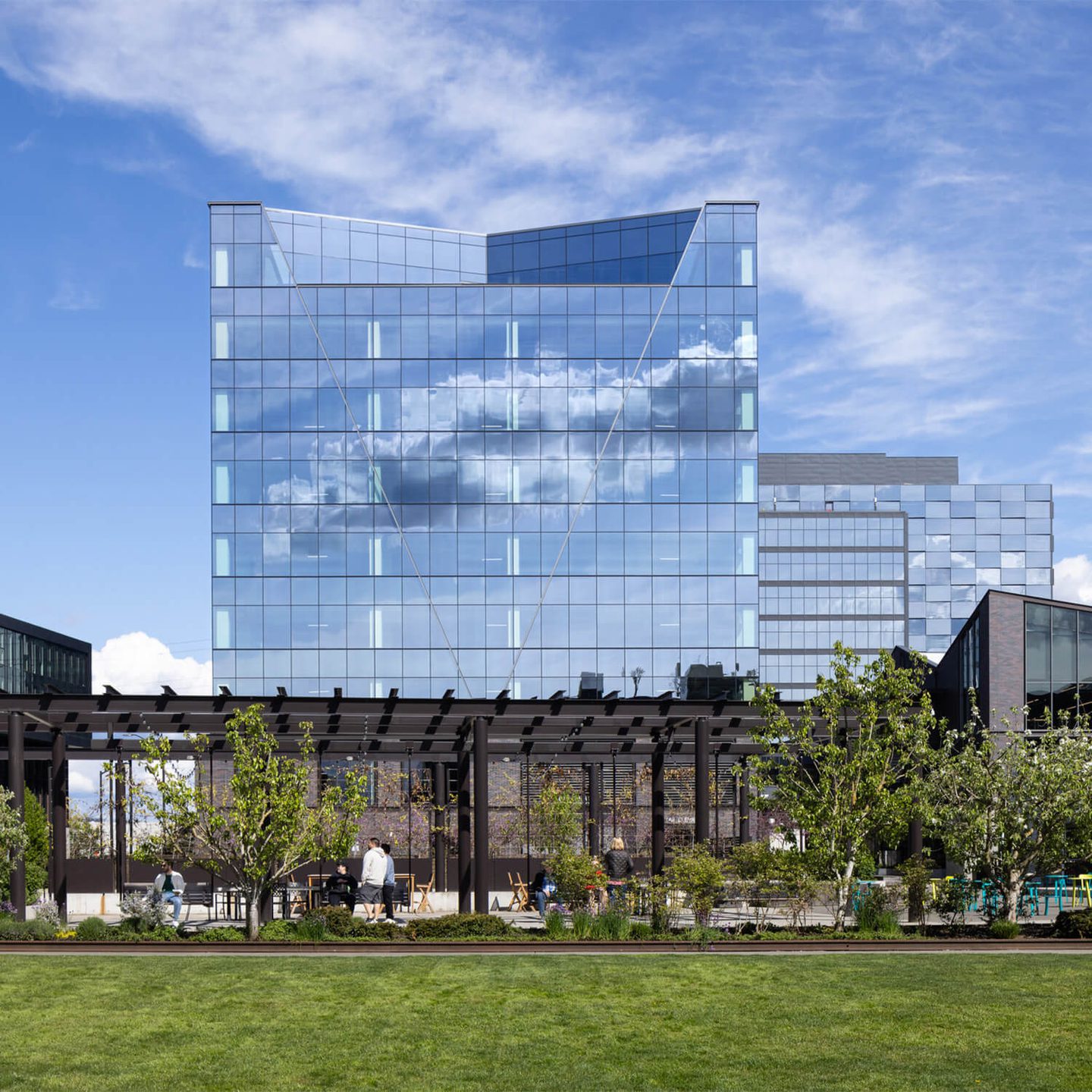 Block 13 is a 350,000 sf nine-story, ground-up, shell and core office building with four floors of below-grade parking. The first floor includes retail space with offices above. The two-story podium features brick and metal panel exteriors, while the third floor and above were constructed with a custom curtainwall system. The project tied into the existing Global Innovation Exchange Building at the parking garage. Coordination of existing utilities presented several unique challenges, including supporting a gas line and communications conduits during and after installation of the shoring system.