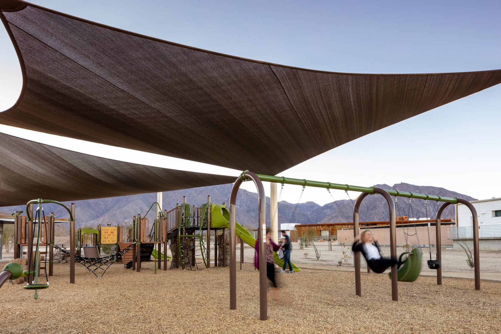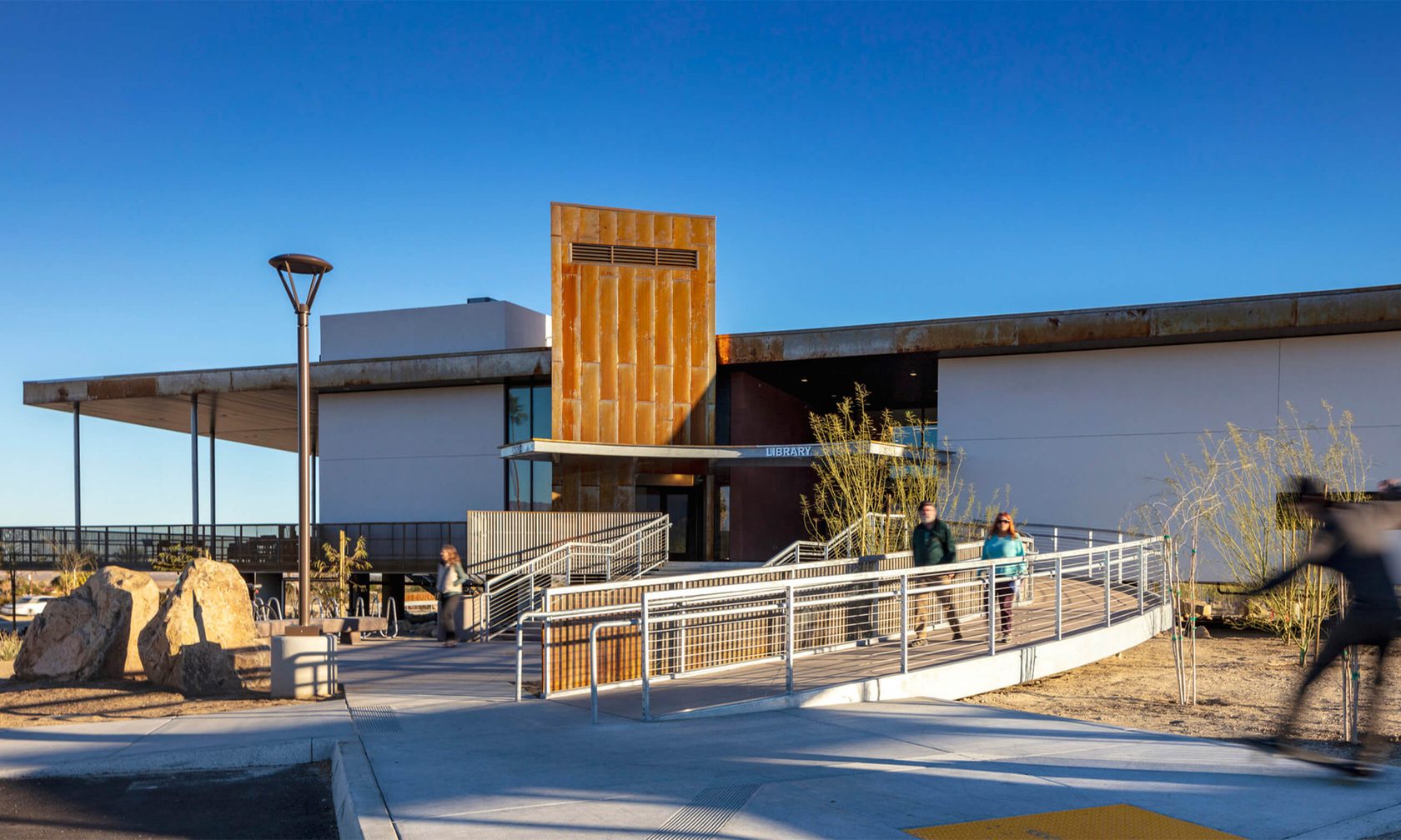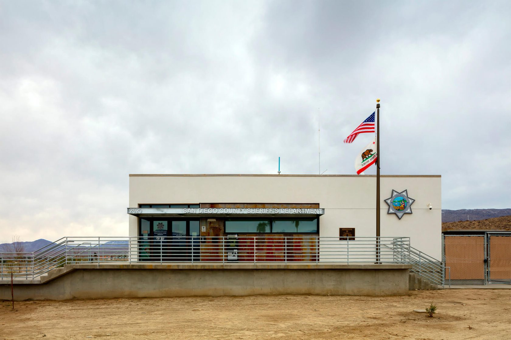 The design-build of the new Borrego Springs Branch Library, Park and Sheriff's Office included all infrastructure, off-site improvements, and surface parking. The new park included covered play structures, meditation areas, picnic areas, an amphitheater, and an observatory among other amenities. The new library serves as a community focal point to provide access to meeting spaces and gather people to engage in civic enrichment activities. The Sheriff’s office included workstations, a reception and lobby area, secured custody area, storage, and support spaces.