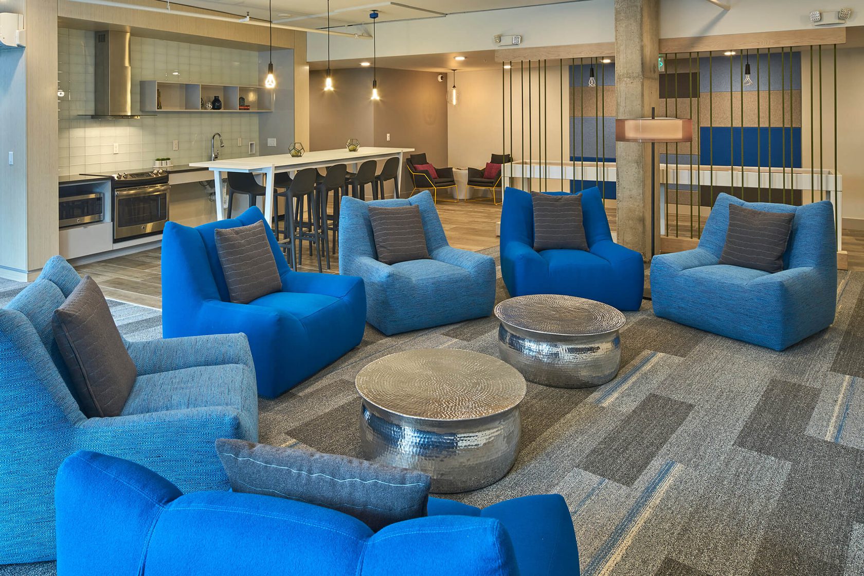Construction of a concrete podium, wood frame apartment complex with 278 units ranging from studios, one and two bedrooms, live-work, and townhouse units. Amenities include a fitness room, courtyard, and rooftop deck with greenhouse, dog run, fire pit, and barbecue area as well as underground parking with 263 stalls. There are five ground-level commercial/retail spaces totaling 7,500sf. BNBuilders self-performed 13% of scope including concrete and site support services.