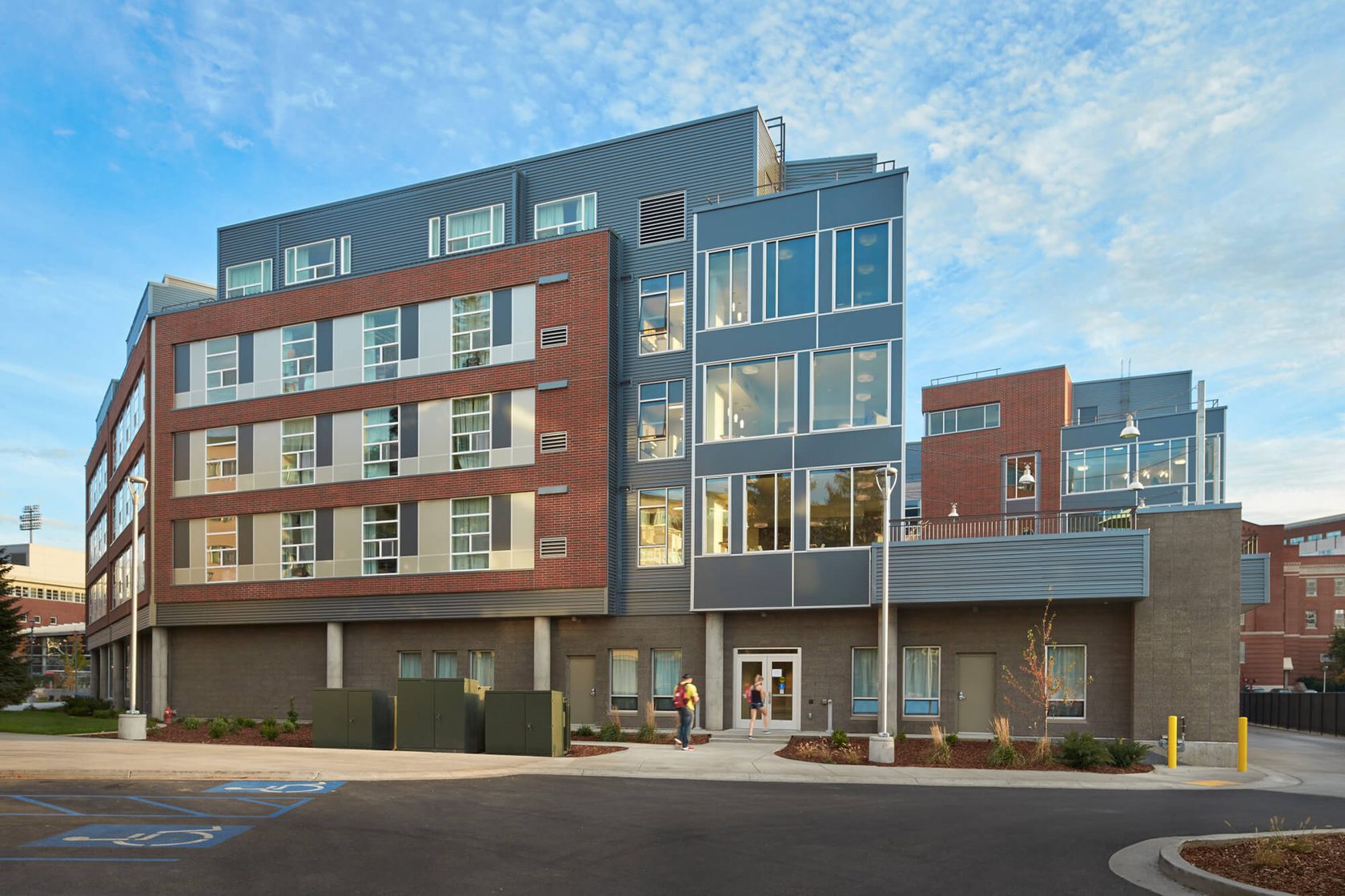 Global Scholars Hall is a design-build, ground-up construction of a five-story residential building. The hall is in the heart of an active university campus and directly adjacent to multiple occupied buildings.