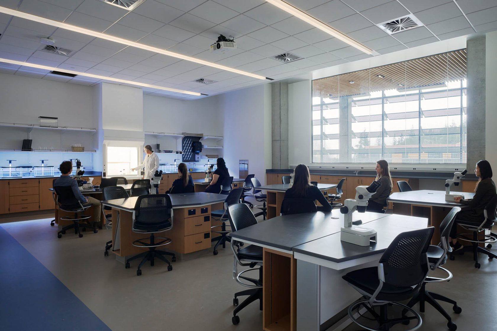 Ground-up construction of a four story and mechanical penthouse multi-discipline STEM building housing biology, chemistry, biochemistry & ecology teaching labs, lab support spaces and active learning spaces. The project included a connector bridge to the adjacent Biology Building and is located on a tight site in the heart of WWU's busy campus. During preconstruction services, BNB worked with the design team and WWU to navigate and overcome challenging soil conditions and existing utilities onsite to optimize the building foundation and utility design so that the project schedule and budget were met at GMP.