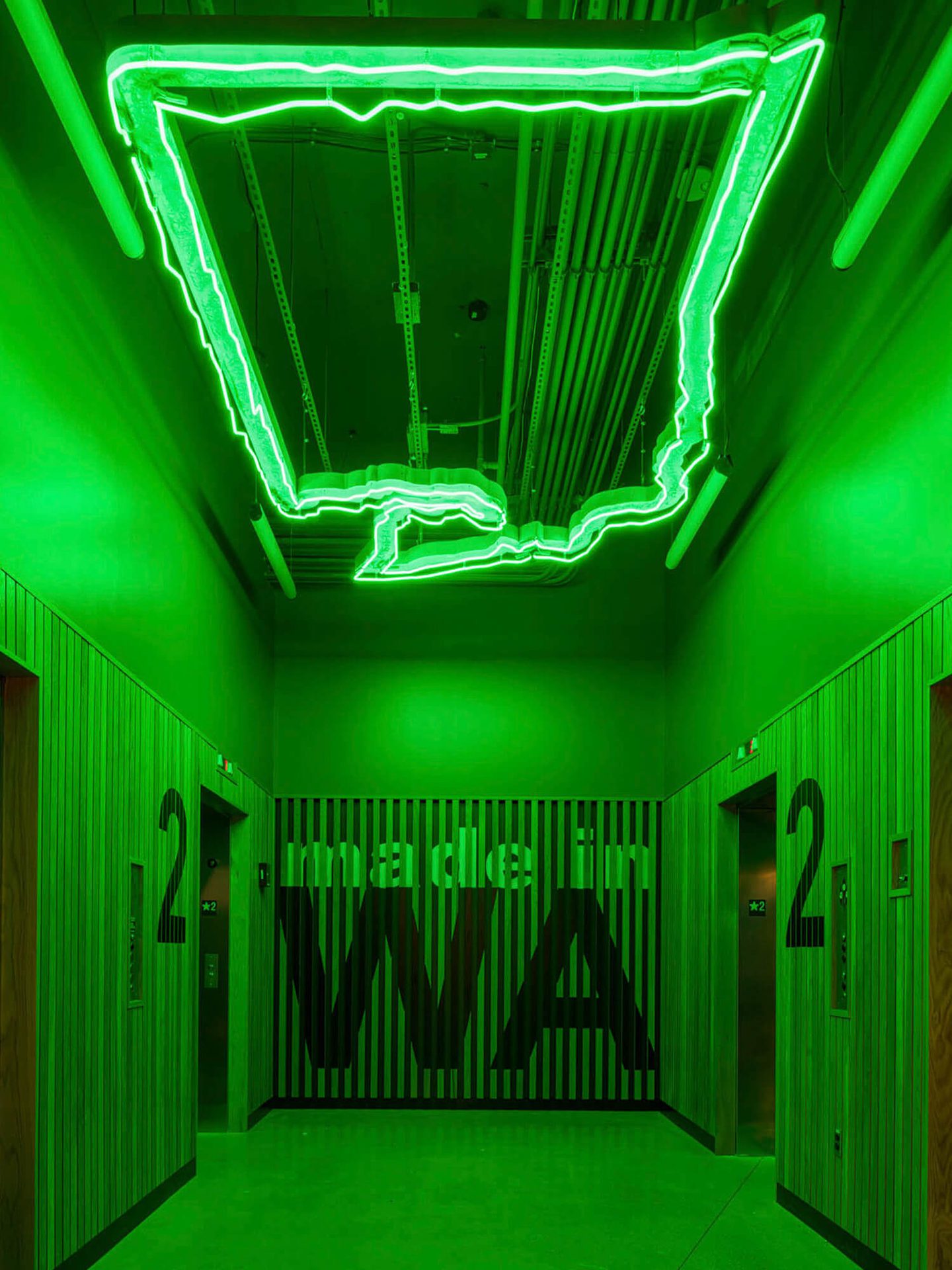 The building designs follow a "Made in Washington" theme for the campus, with the Central Building focusing on Industry and the North Building focusing on Infrastructure.