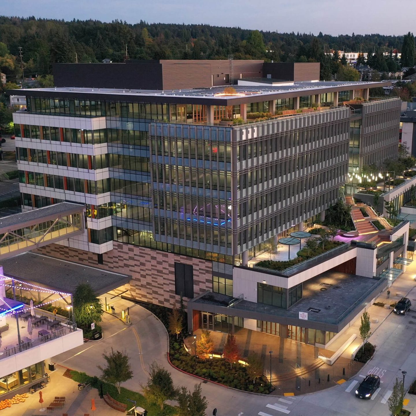 This ground-up construction of the shell and core for a 250,000sf of commercial office space and 42,000sf of retail space, included a luxury theater and parking garage. The project was the second phase of a full campus development and is pursuing LEED Gold v4 and the Living Building Petal Certification.