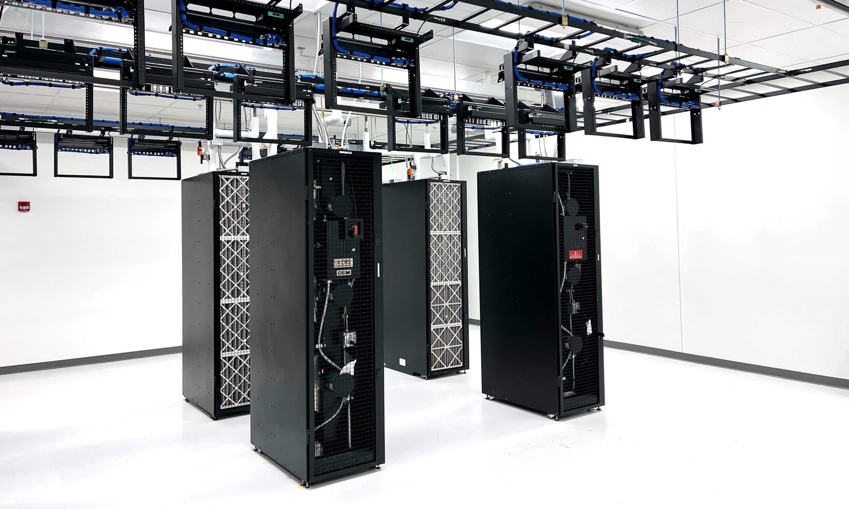 This project involved a complete replacement of controls for the existing cooling plant and air handling units, with an emphasis on salvaging and reusing existing equipment. New systems were also installed, including a VESDA pre-action system and a self-performed hot aisle containment system above server racks. The coordination of complex MEP systems above the racks, in collaboration with the AHJ, ensured code compliance and safety, including the separation of the POD C fire alarm system from other tenant-owned areas.