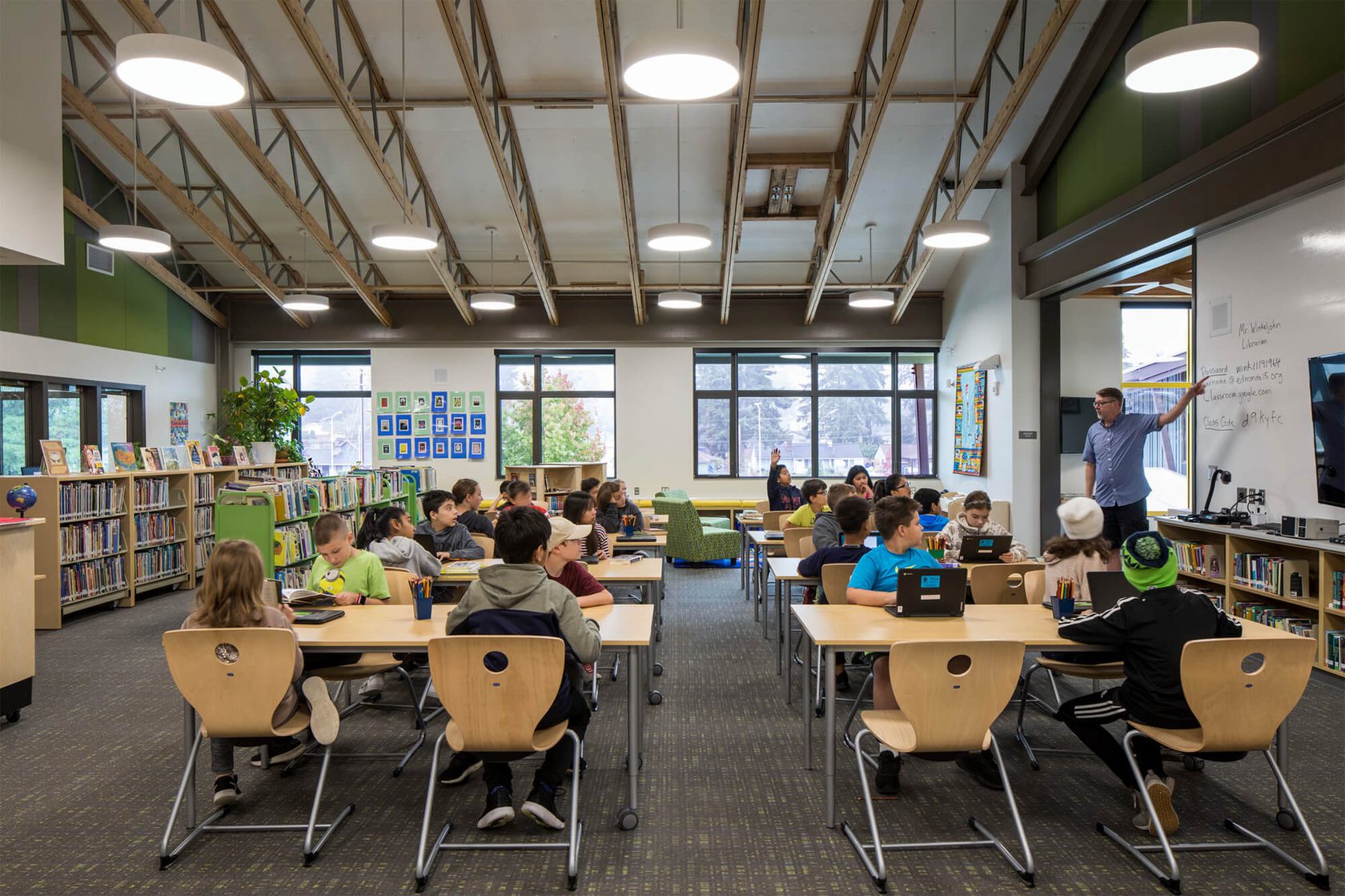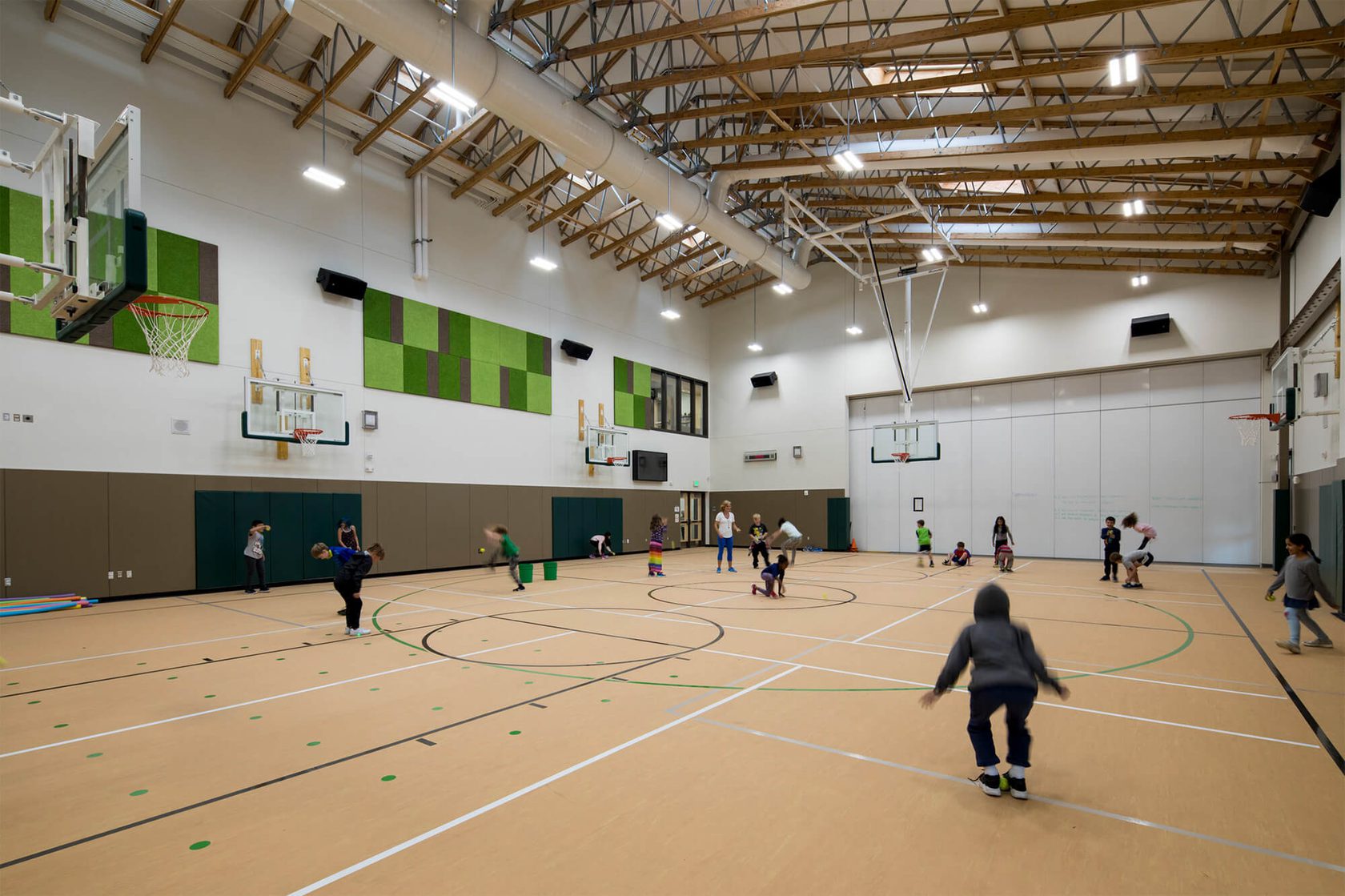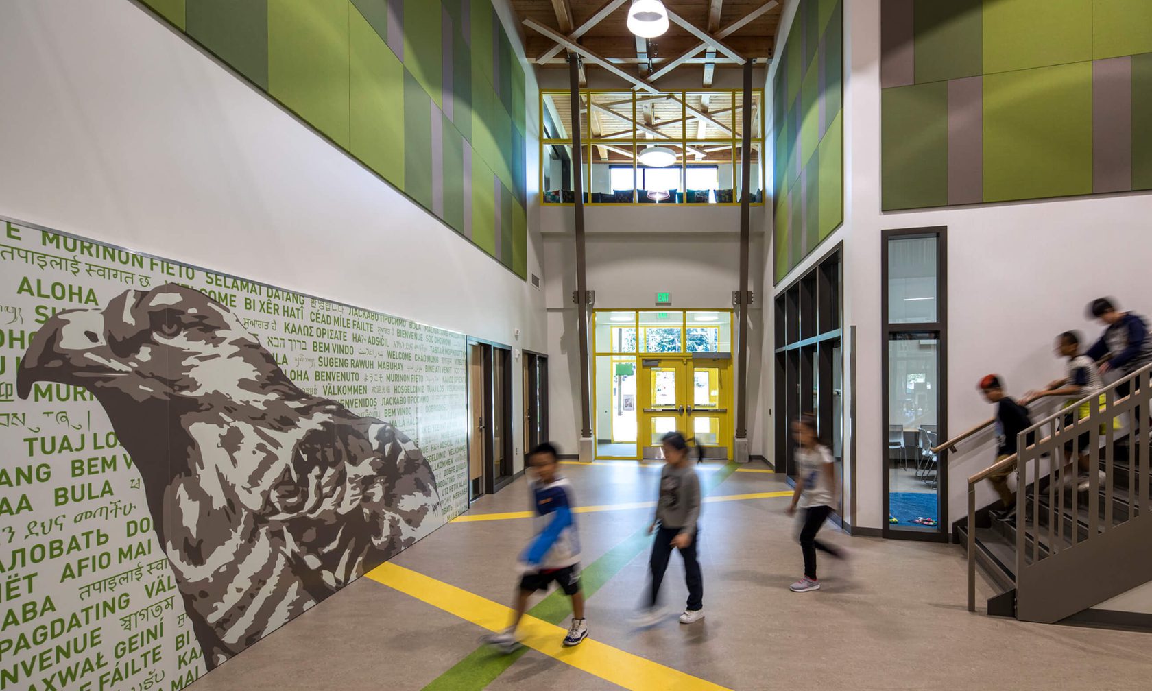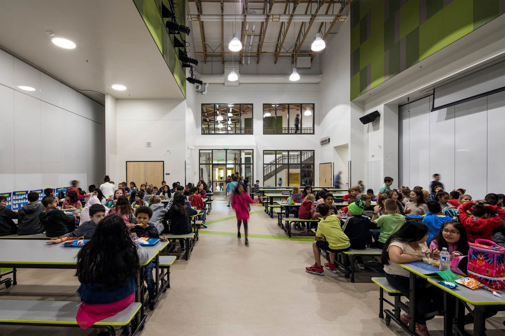 A GC/CM construction of a steel-framed public school in a residential neighborhood which included classrooms, gymnasiums, a theatre, innovative educational spaces, a kitchen, and new parking and bus circulation.