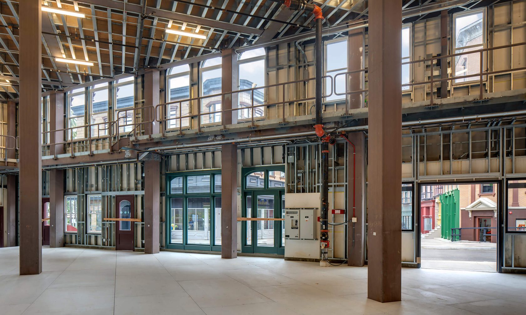 This project replicated the existing exterior set façades and upgraded associated infrastructure to optimize on-lot film production and special events. Architecturally, the new set façades retained the look and feel of a New York City block circa 1910. New enclosed interior spaces are located along street “storefronts” to provide interior/exterior set continuity.