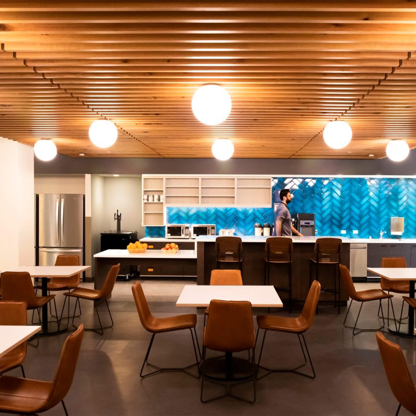 This project included demolition and build-out of office space in an existing Saks Fifth Avenue department store in downtown Santa Barbara. The building offers the amenities of a modern corporate office, with large television screens, cozy chairs, conference rooms, lounge areas, a kitchen and eating area, and a foosball table.