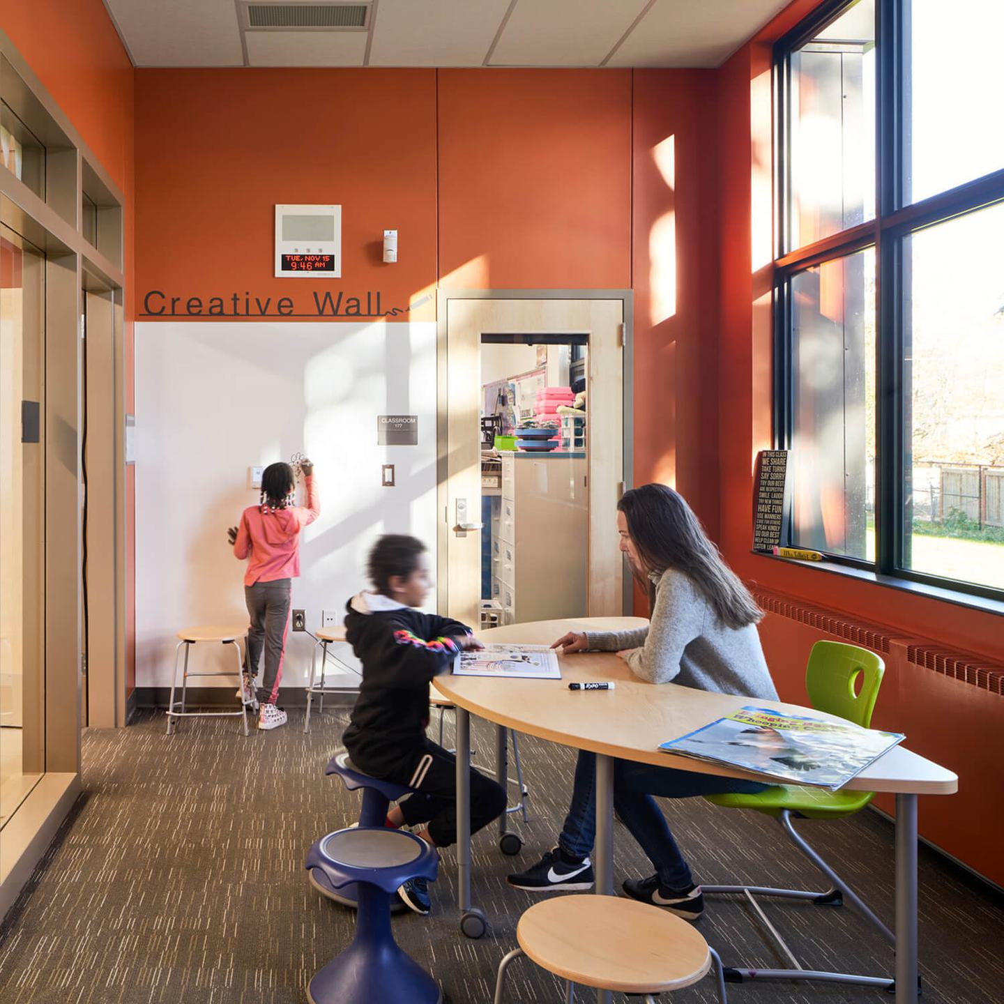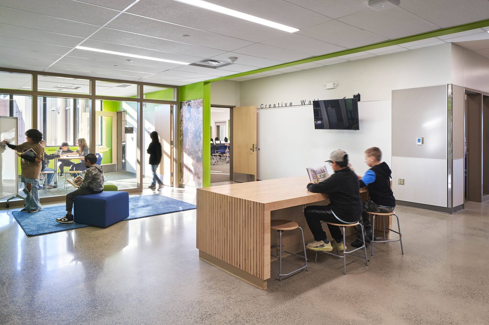 The Spruce School is a ground-up construction of a replacement elementary school for the Edmonds School District. Nine acres of site work included a new extensive underground storm water detention system and all new utilities. The new facility includes a classroom wing, library, admin area, kitchen, commons, gymnasium, playfields, and parking. The existing school was fully occupied during construction and immediately adjacent to the project.