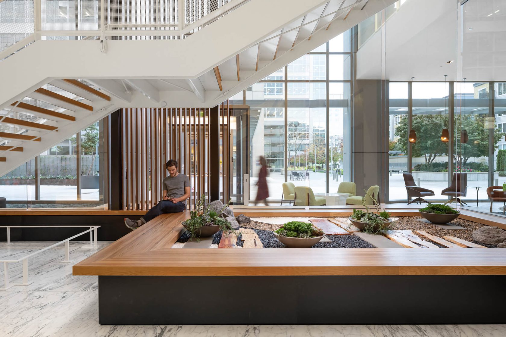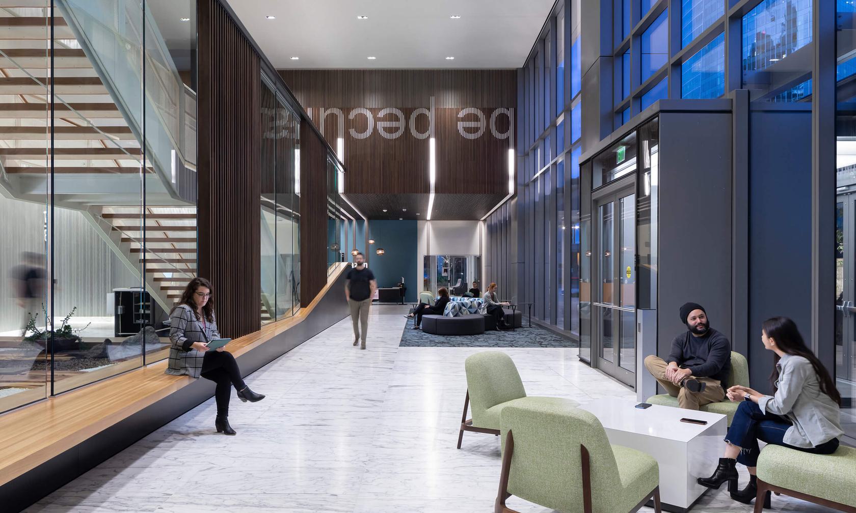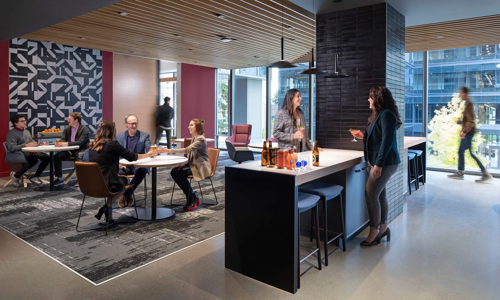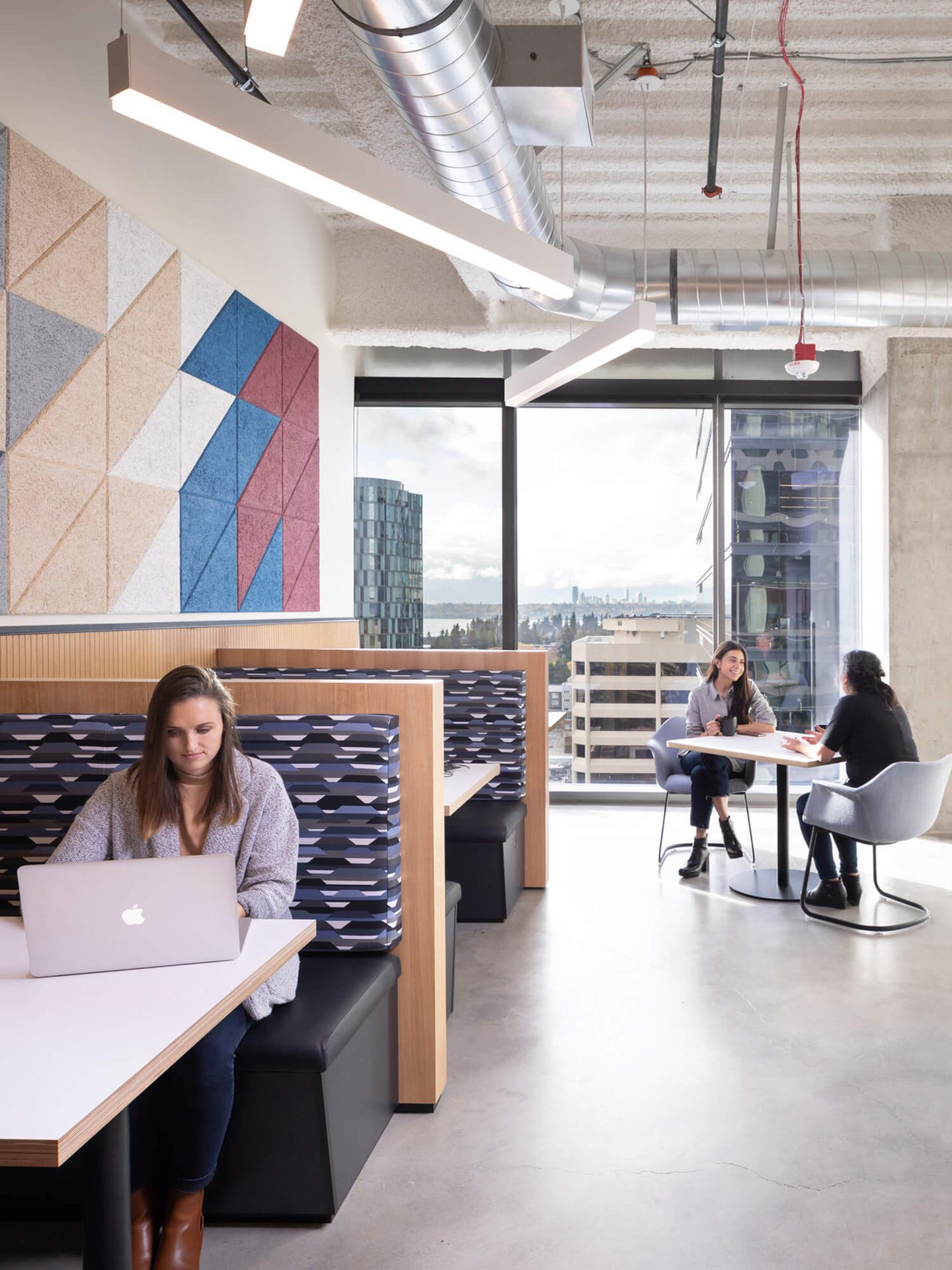This 17-story build-out of tech office space included common areas, conference facilities, multiple kitchens, and other amenities in a newly constructed shell and core in Bellevue, WA.