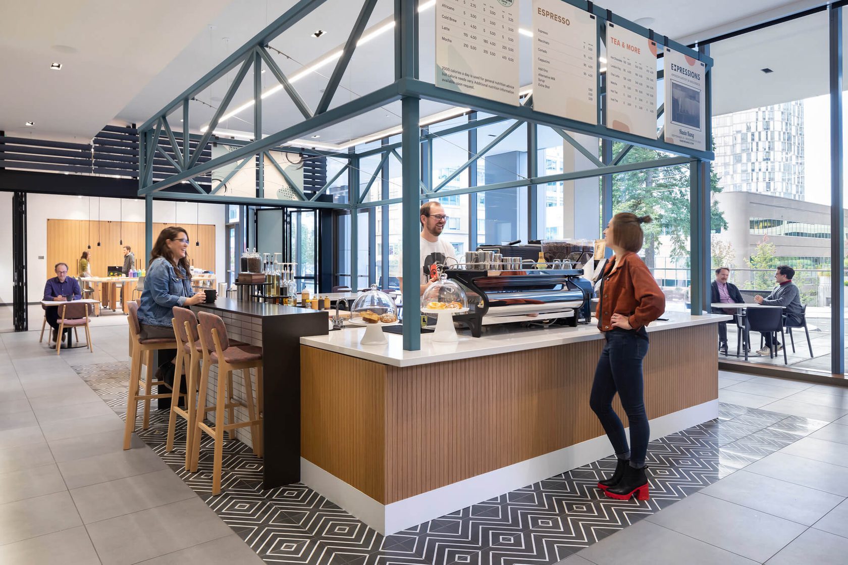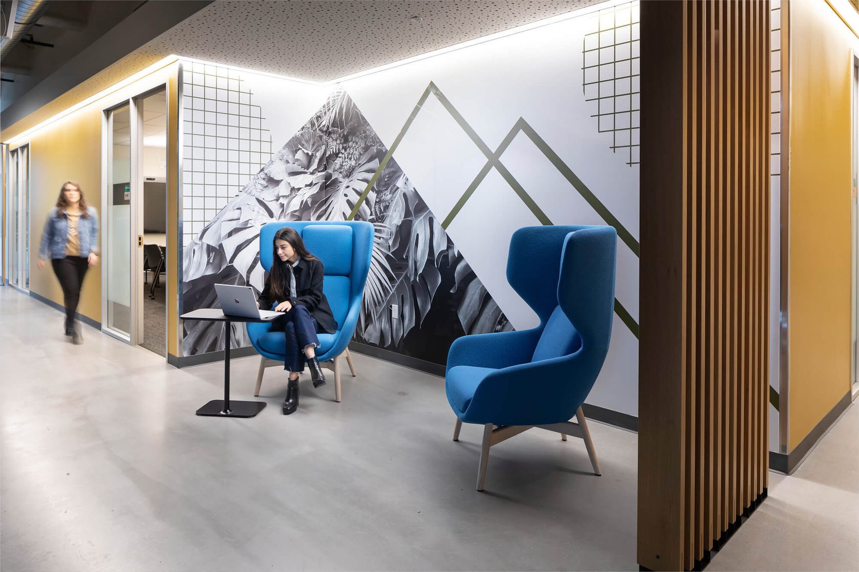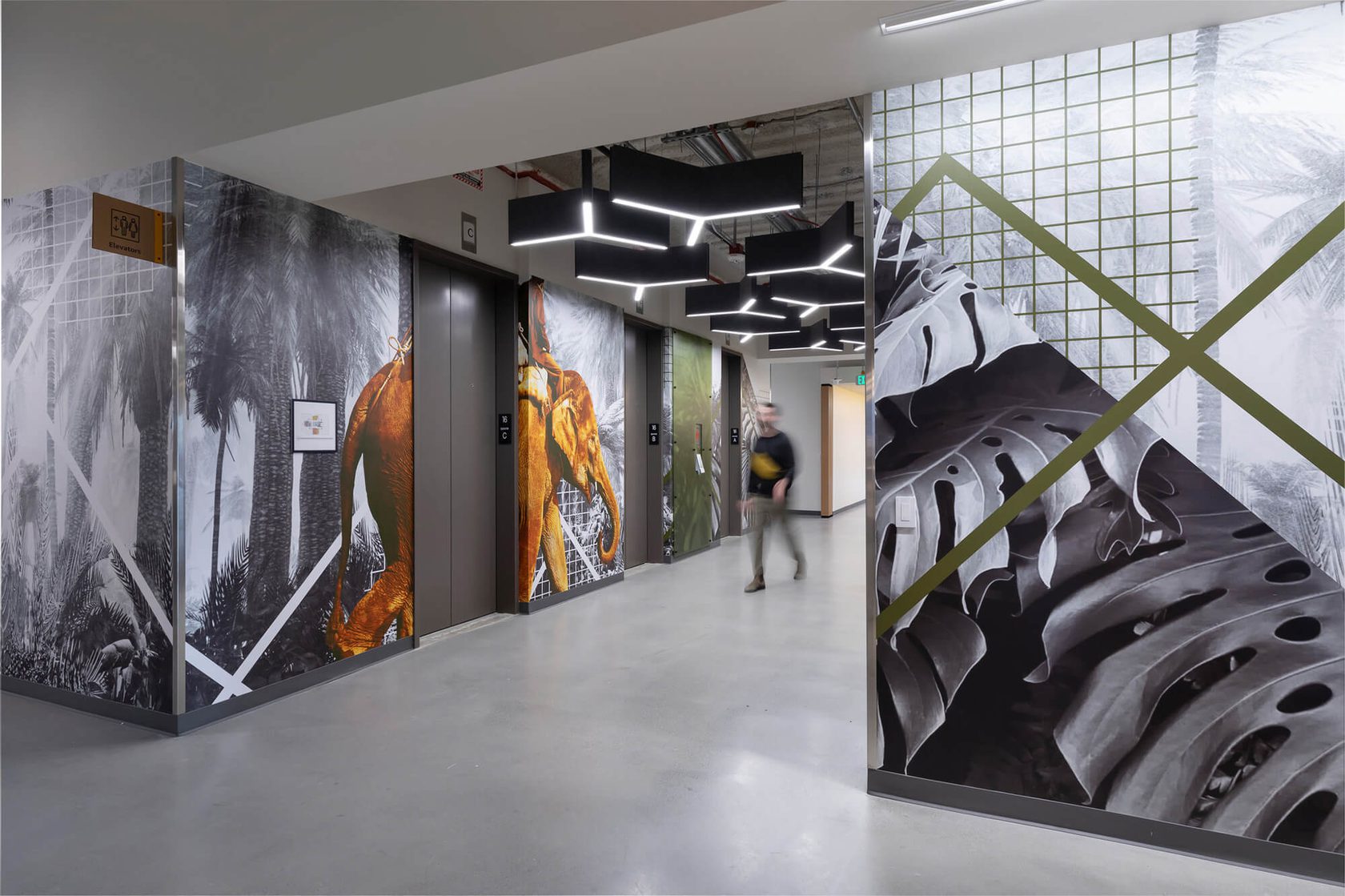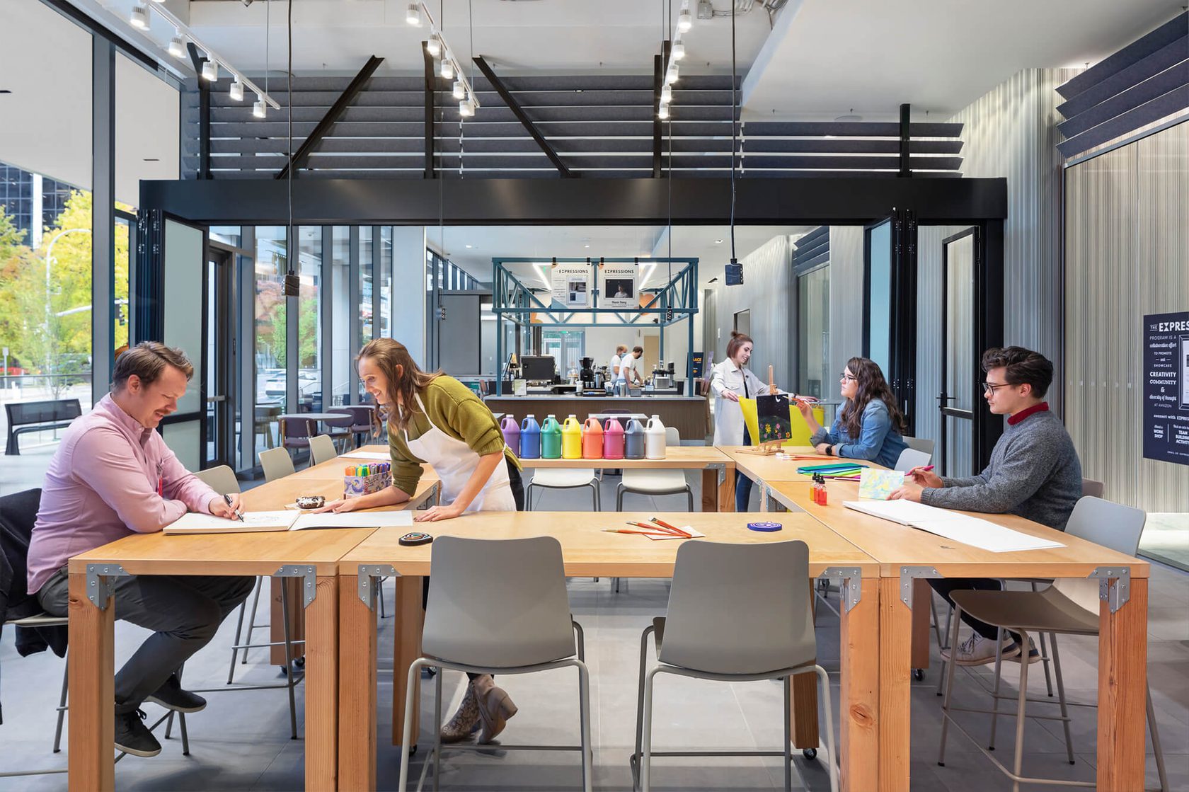 This 17-story build-out of tech office space included common areas, conference facilities, multiple kitchens, and other amenities in a newly constructed shell and core in Bellevue, WA.