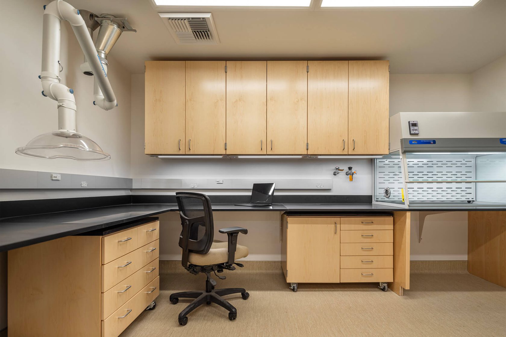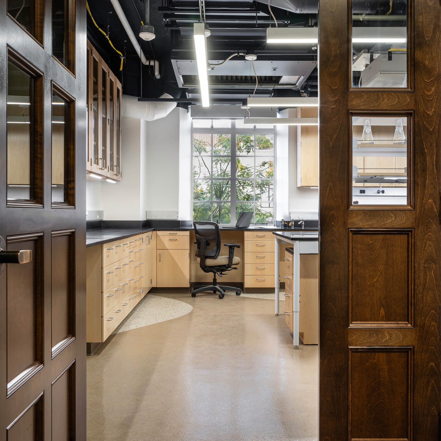 A strategic lab renovation within an active research facility. This 1,855sf project transformed existing space into a wet lab, workroom, weight room, and cold room. Design-build delivery streamlined coordination, navigating site access constraints and managing long-lead materials to deliver a modern, fully operational laboratory that supports advanced research initiatives.