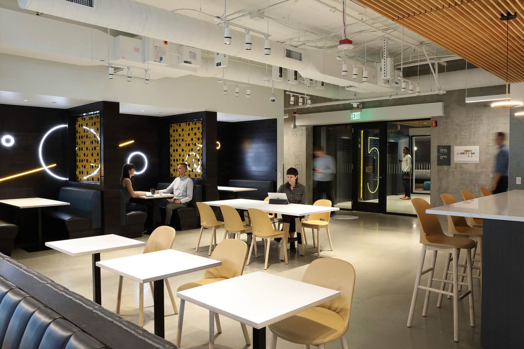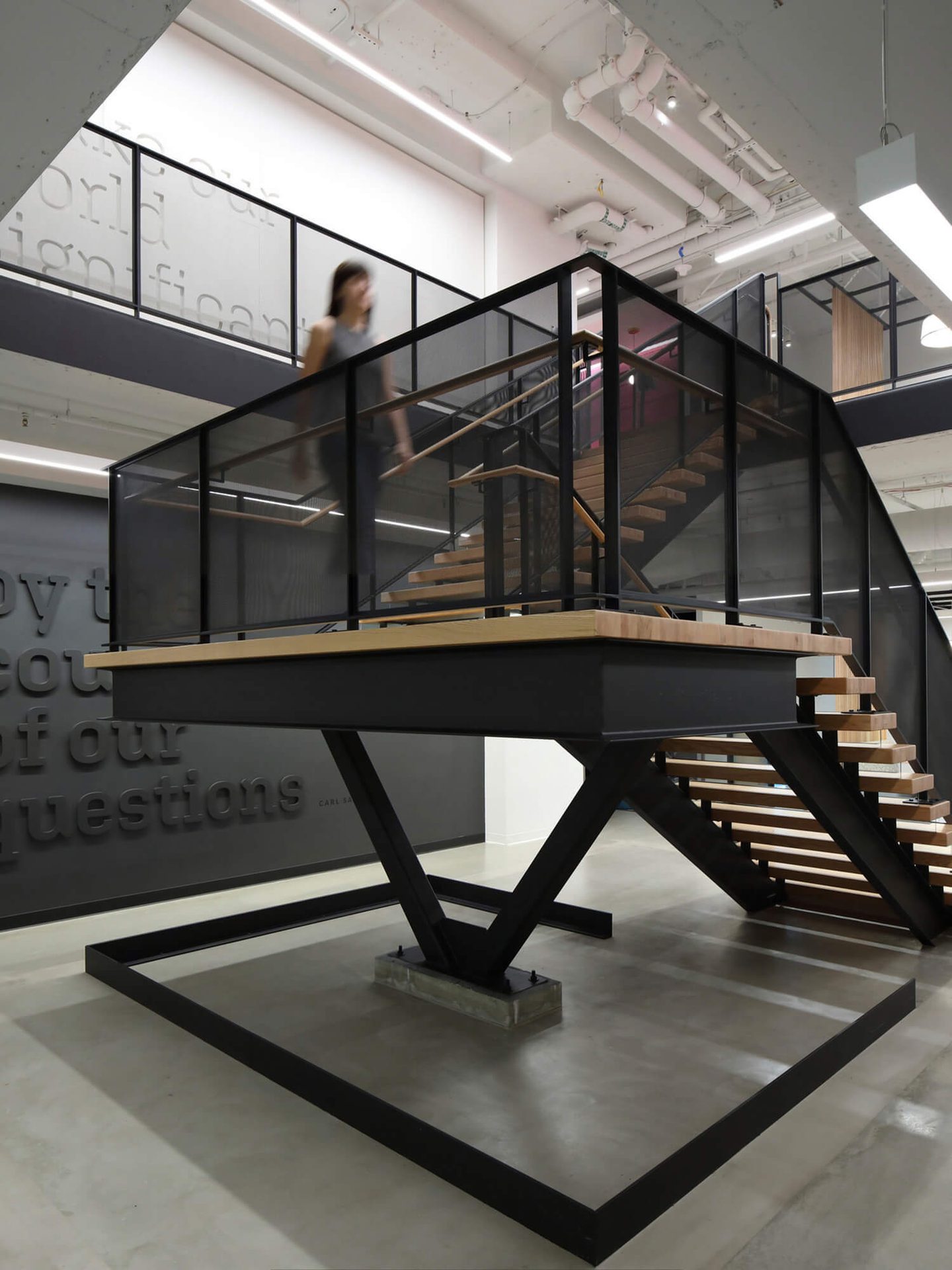 This 125,000sf multi-floor office build-out included an open office, conference and meeting rooms, common spaces, and kitchenettes. Construction took place on an occupied campus.