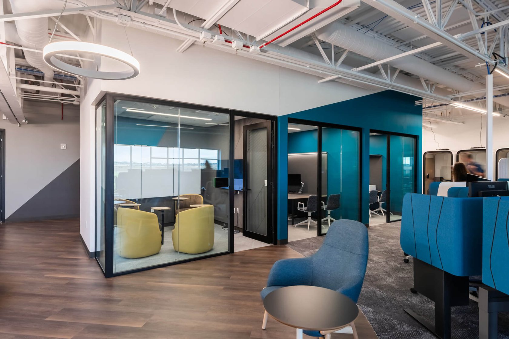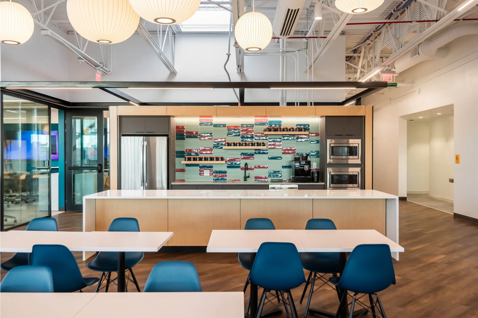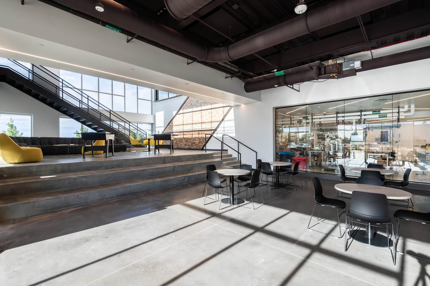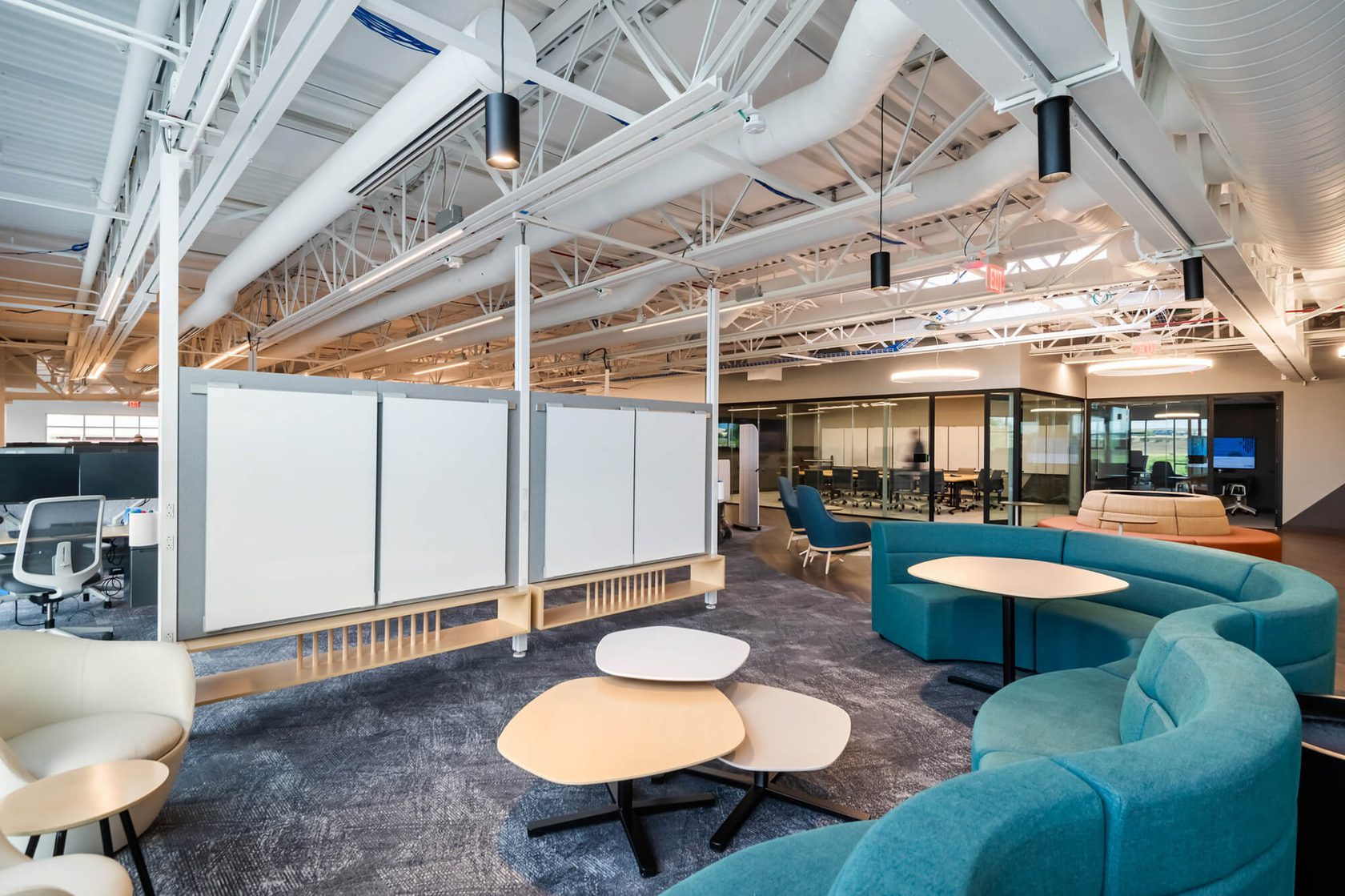 This 18,000sf tenant improvement project created new office space on the second floor of a recently built cGMP manufacturing facility for Umoja Biopharma. The first-generation build-out took place within an existing shell and core on the mezzanine level above new lab and manufacturing areas and included the addition of office and amenity spaces.