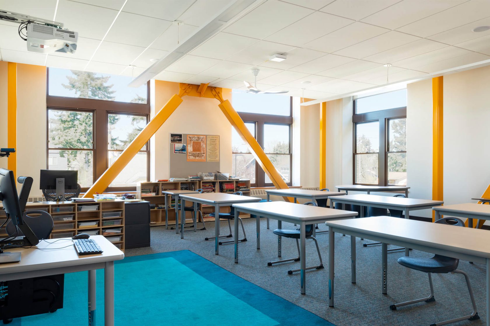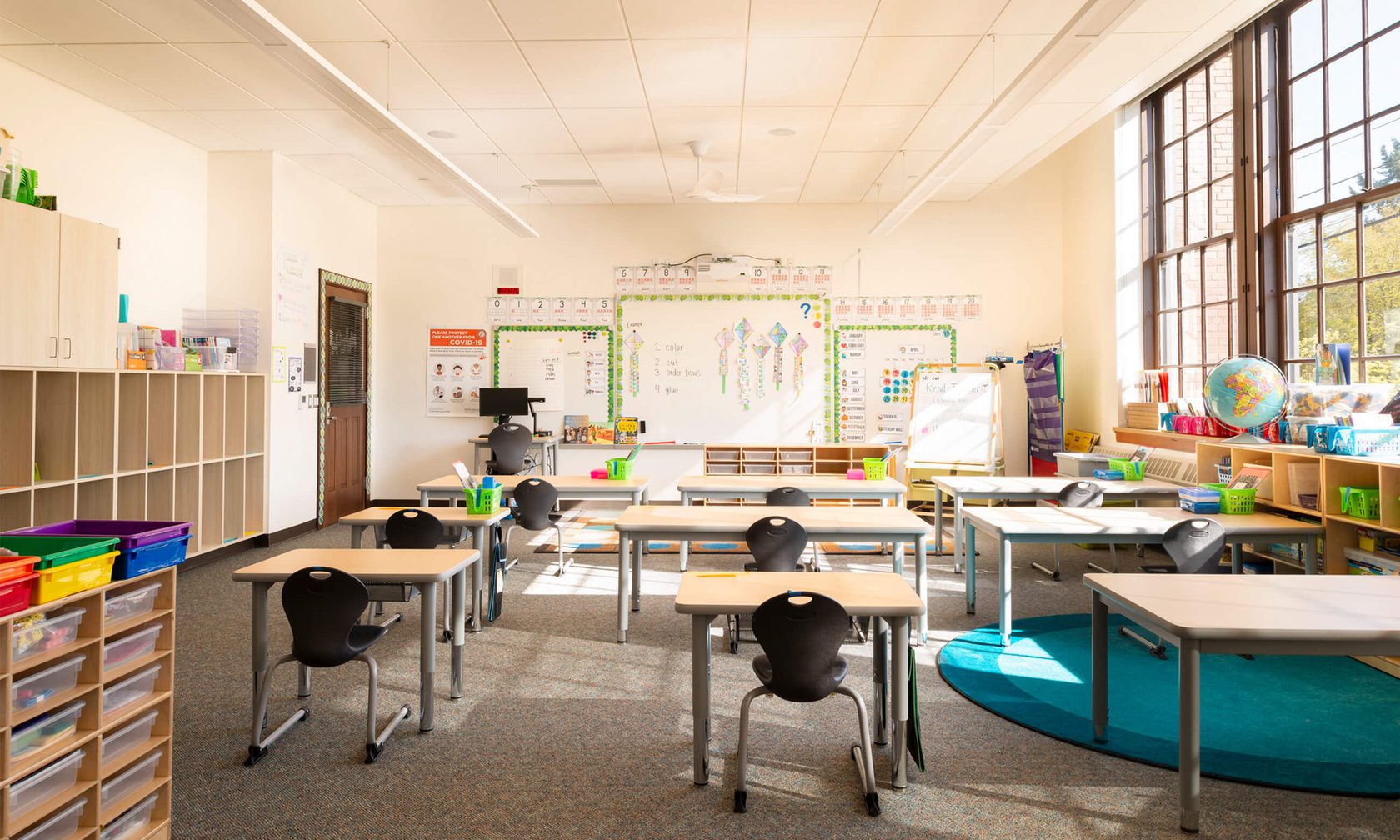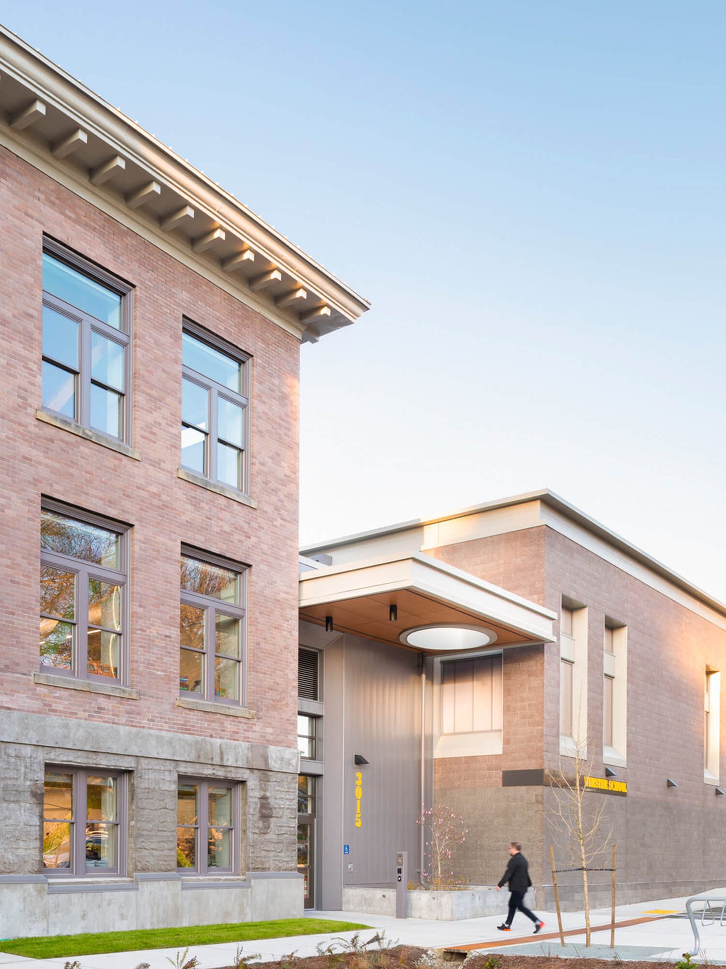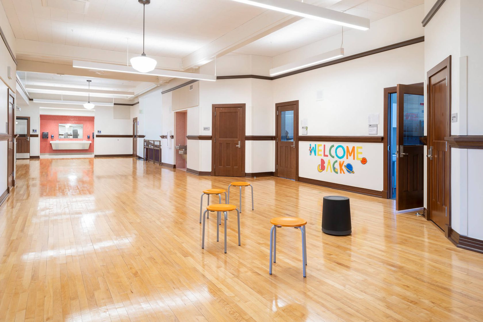 This GC/CM construction of the modernization and addition of a historically landmarked school includes upgrades of existing un-reinforced masonry structure, gym addition and connector, and complete renovation of the building system and finishes. Historic building renovation components included a masonry restoration, wood doors, trim, and floors. Site improvements included a new play area, hardscape, and landscaping. This project was located in a residential neighborhood, necessitating a robust site logistics and communication plan to ensure safety, keep neighbors informed, and facilitate efficient construction.