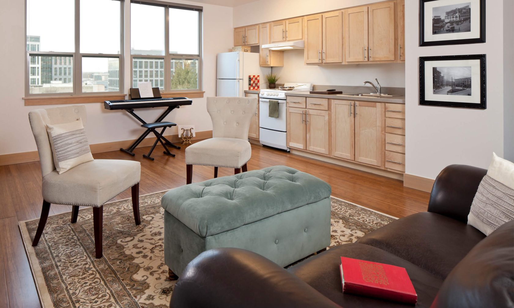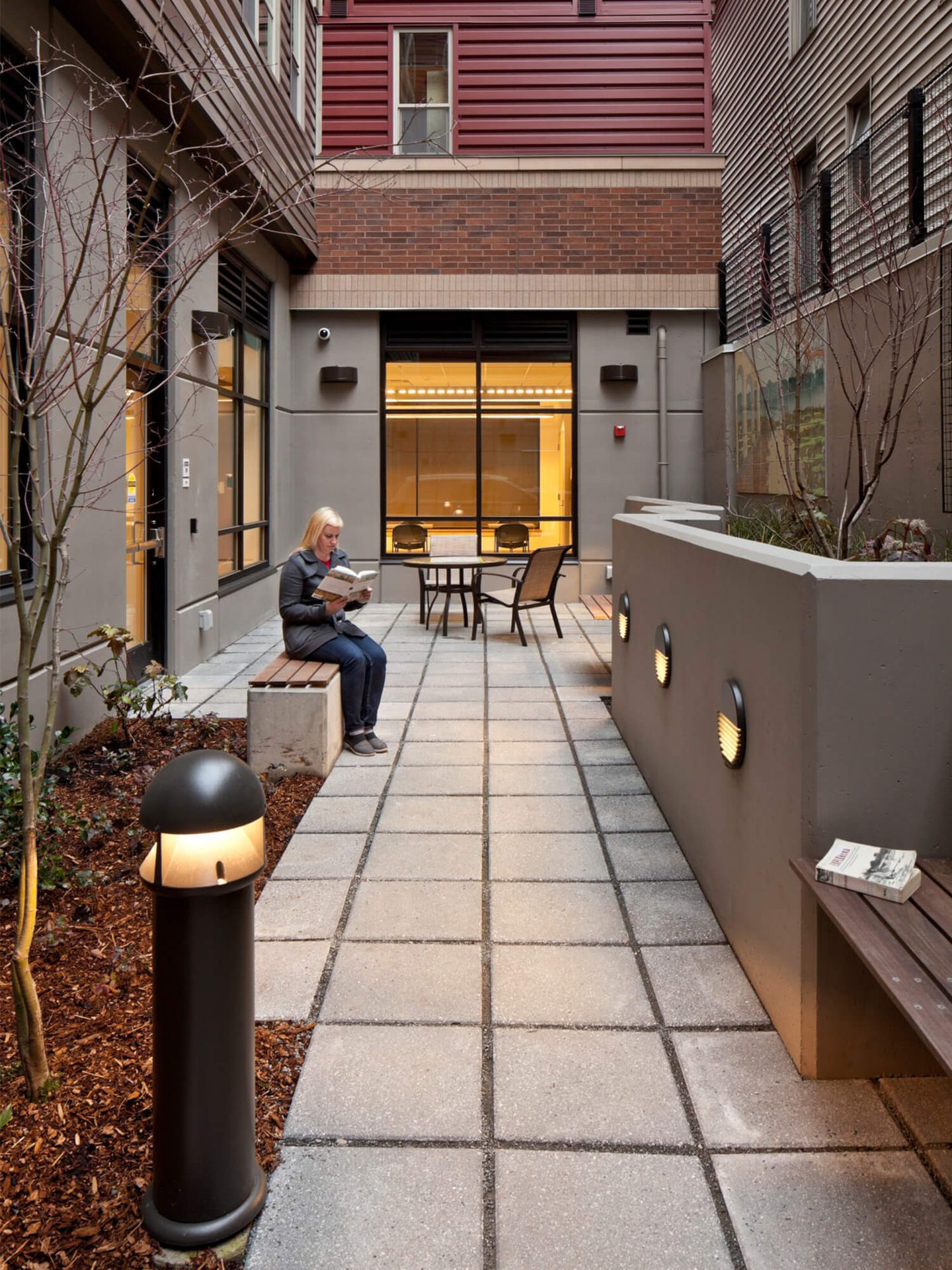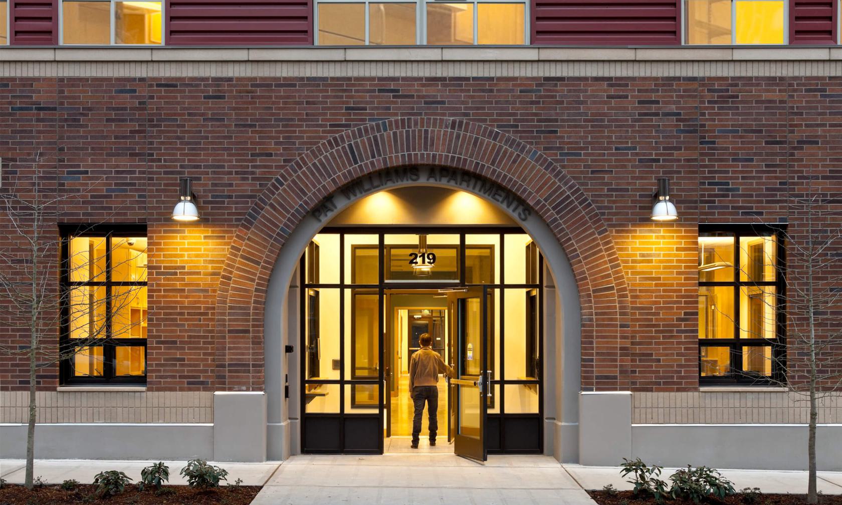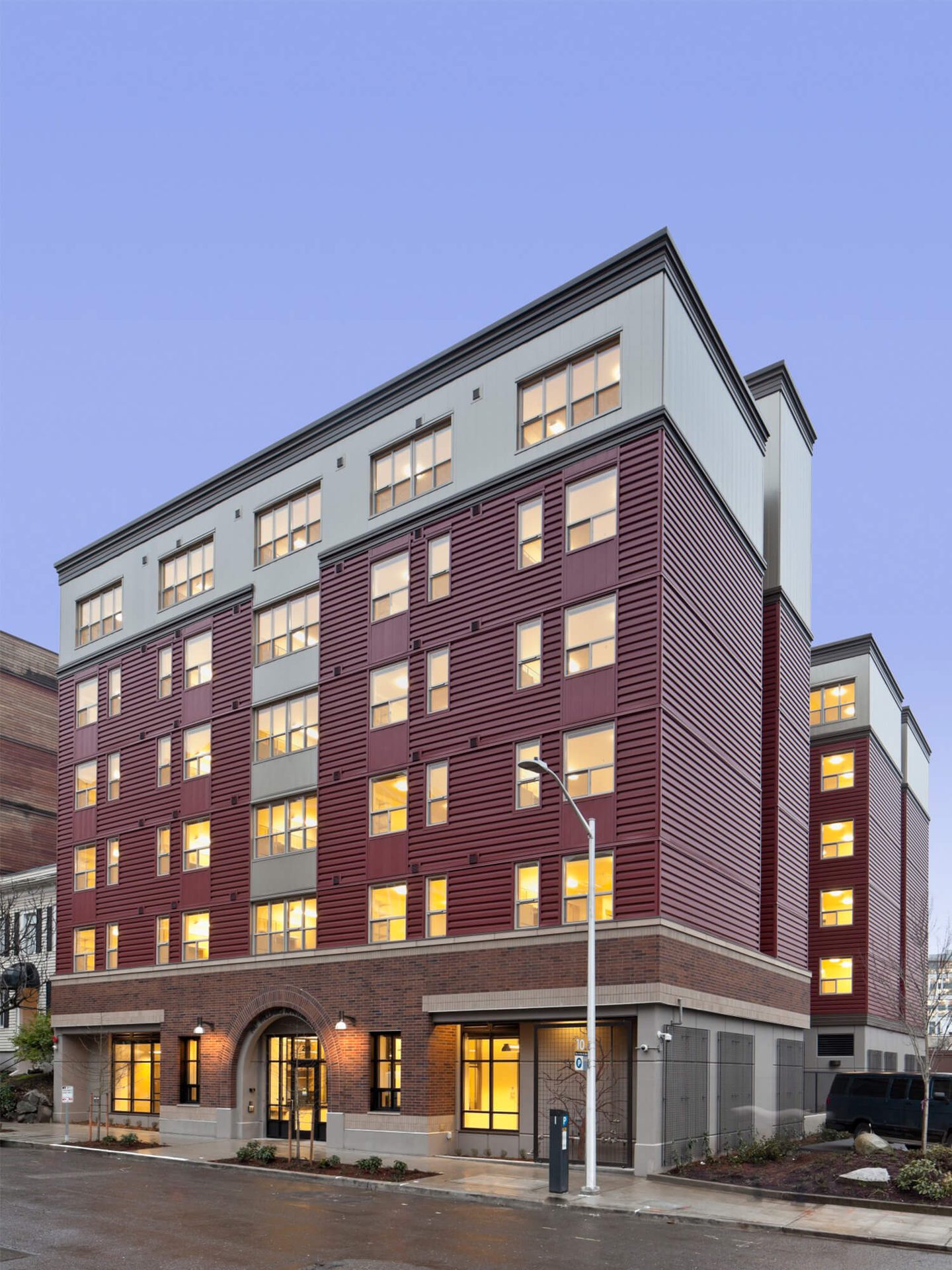 This project consisted of preconstruction and construction services for a five floor, 84-unit building. The exterior envelope consisted of a rain screen system of brick on the lower floor and two types of metal panel siding on the upper floors. Solar panels were installed on the roof to help supplement the building's hot water supply. This project received a LEED Platinum certification.